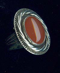 More Carnelian. This is a ring for a smaller hand, size 6 1/2. The stone measures 15x20 mm. $180.00 #489