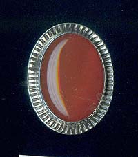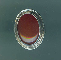 A Ring of Sterling Silver and African Carnelian. This is a rather dainty ring. The size is 4 3/4 and the stone measures 12x18mm. $160.00 #531