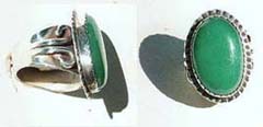 A Sterling Silver and Chrysoprase ring. The size is 10. The stone is another full-bodied green of very nice color and measures 16x20 mm. This would be a nice ring for either a man or a woman. $285.00 #292