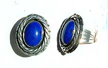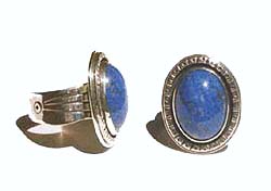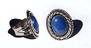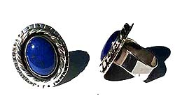 Lapis Lazuli and Sterling Silver Ring. This is a classic, slightly lighter blue stone, with a heavy sterling silver setting. Ring size is 10 1/2 and the stone size is 15x20 mm. $185.00 #233