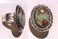 Sterling Silver and Royston Turquoise, 25.1 carats. Well patterned turquoise in a heavy ring. Ring size is 13 and the stone size is 17x30 mm. $175.00 #281