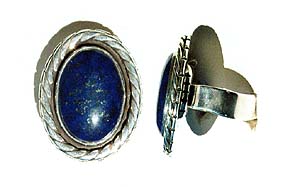Lapis Lazuli and Sterling Silver Ring. This is a classic, slightly lighter blue stone, with a heavy sterling silver setting. Ring size is 10 1/2 and the stone size is 15x20 mm. $185.00 #233
