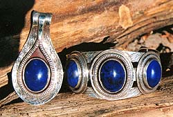 A very nice bracelet set with three matched Lapis Lazuli stones. This is a nice piece by itself, or can be had with the matching pendant #449. See below. $235.00 #450