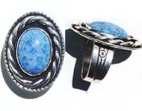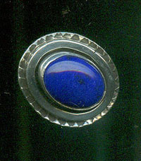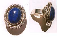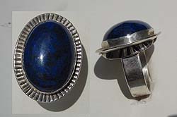 Lapis Lazuli and Sterling Silver Ring. This is a classic, slightly lighter blue stone, with a heavy sterling silver setting. Ring size is 10 1/2 and the stone size is 15x20 mm. $185.00 #233