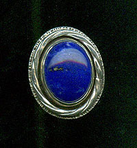 A fine ring with a 18x24 mm piece of excellent classic Lapis Lazuli. The size of the ring is 7 1/4. $175.00 #627