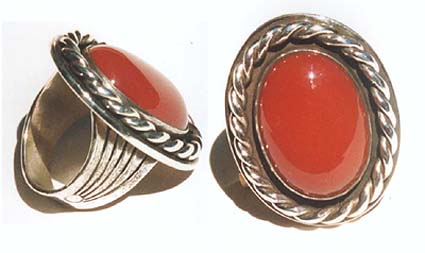 A nice sized ring of Sterling Silver and African Carnelian. The ring is a size 10 and the stone measures 14x18mm. The medallion is 37mm in height. $175.00 #226